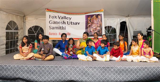 NAPERVILLE - Foxvalley Ganesh Utsav Samithi (FVGUS) celebrated the Ganesh festival with pomp and gaiety for the sixth year in a row. FVGUS started the first Public Ganesh celebrations in the Chicago area in 2016 and is continuing the tradition. The devotees thronged the pandal to witness the daily religious rituals, bhajans and cultural programs. Kids performances were the highlight of the event.